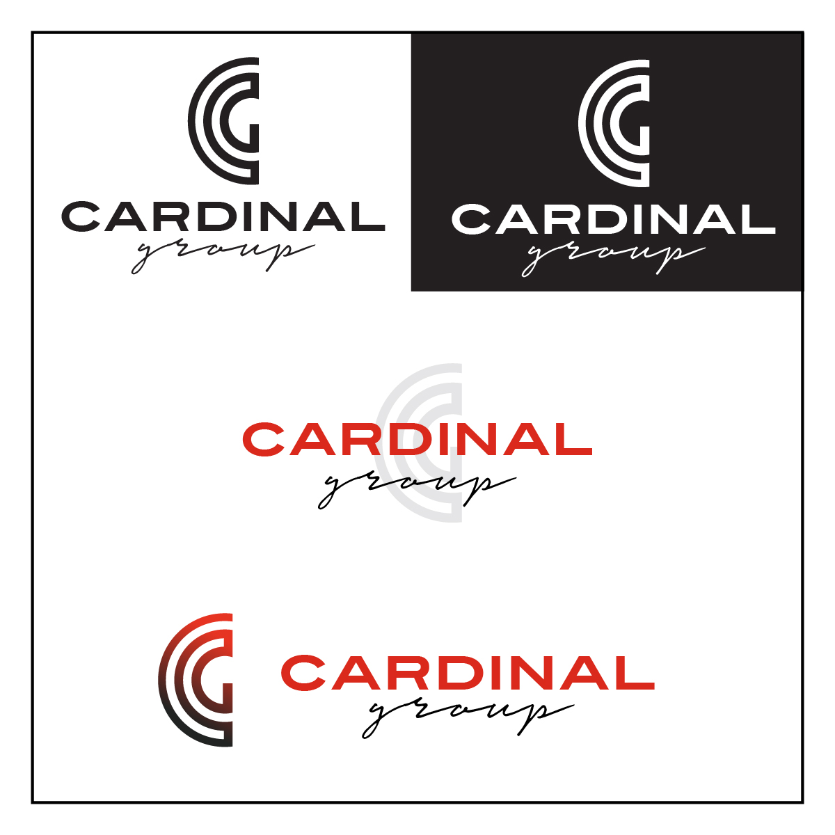 The design of the icon was made from a single line, creating the initials (CG) out of one line to show the various parts (a.k.a. businesses) are united. The red and black colour scheme plays on that of an actual cardinal after which the company was named.