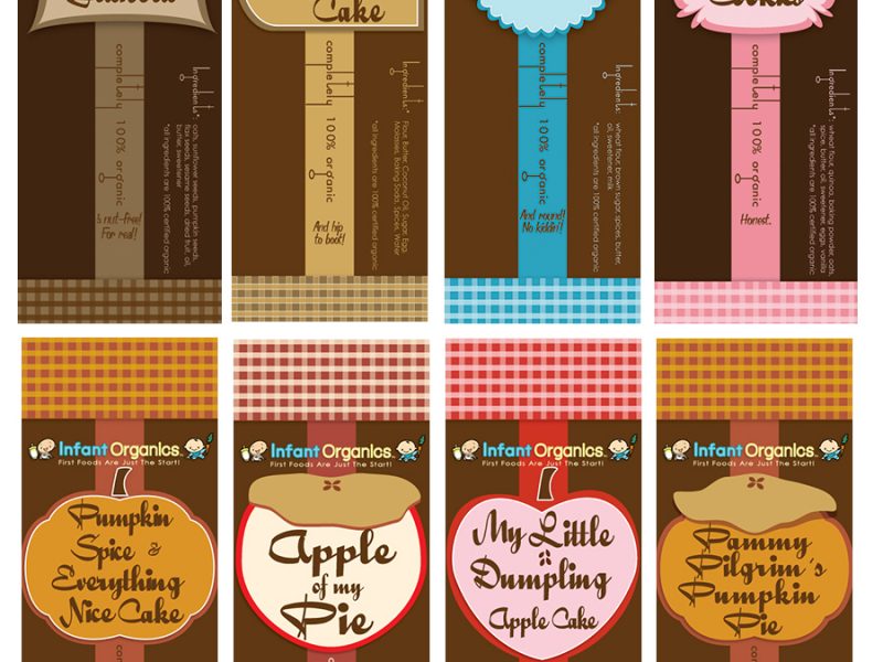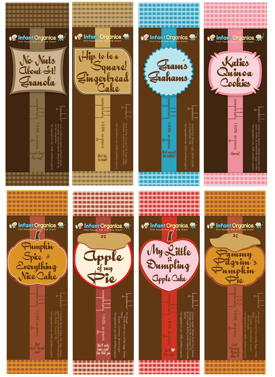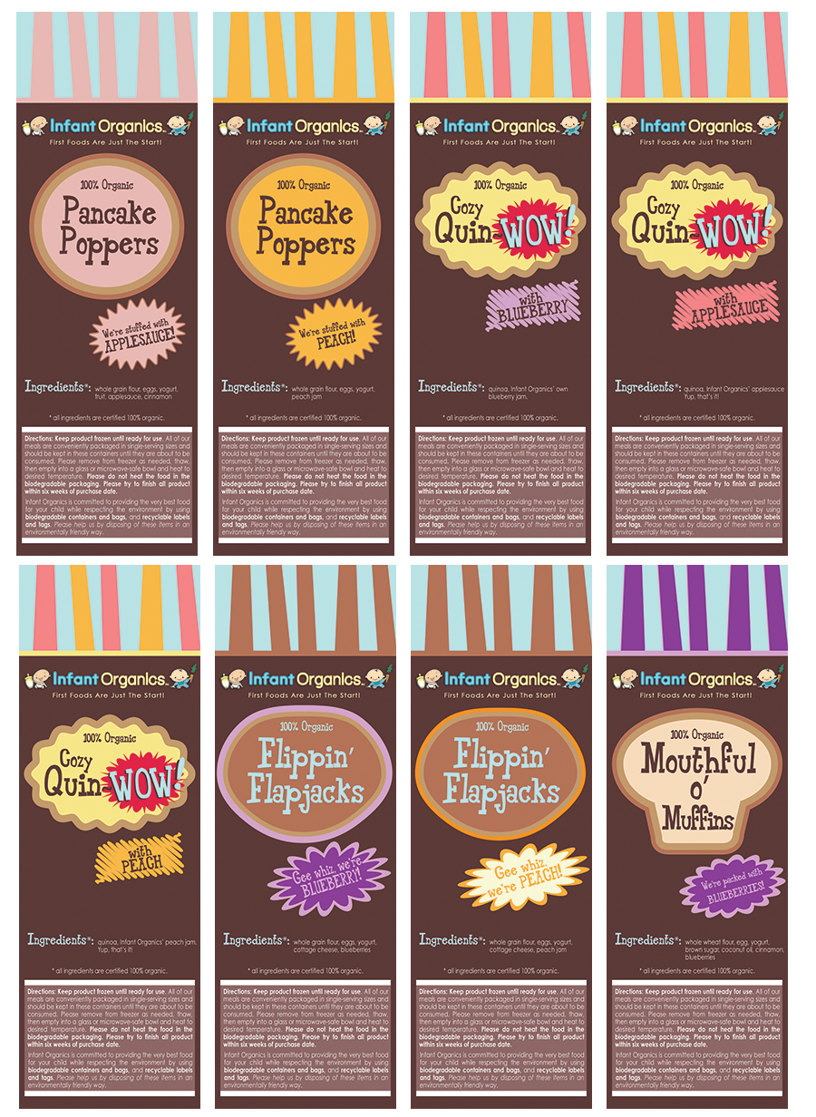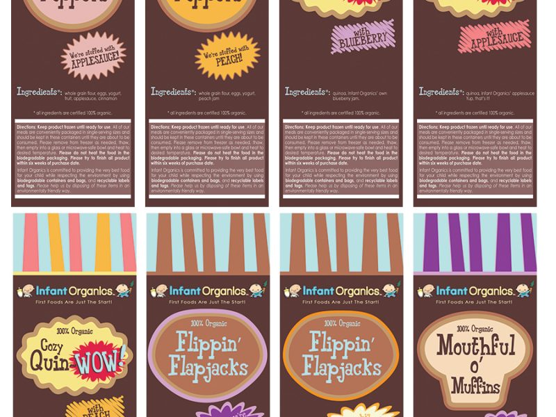 The following images show the branding and label design created for Infant Organics, as well as food photography done for promotional and in-store advertisements. Everything was designed with a sense of humour to make the packaging fun, unique and stand out from typical children’s packaging. The owners were exceptional in conceptualizing clever names for the food and were open to quirky illustrations and poster designs. They were dream clients.