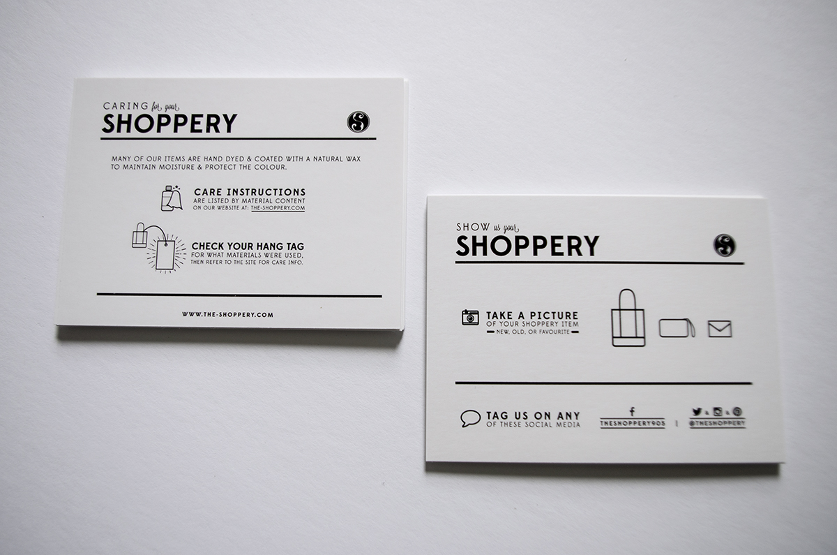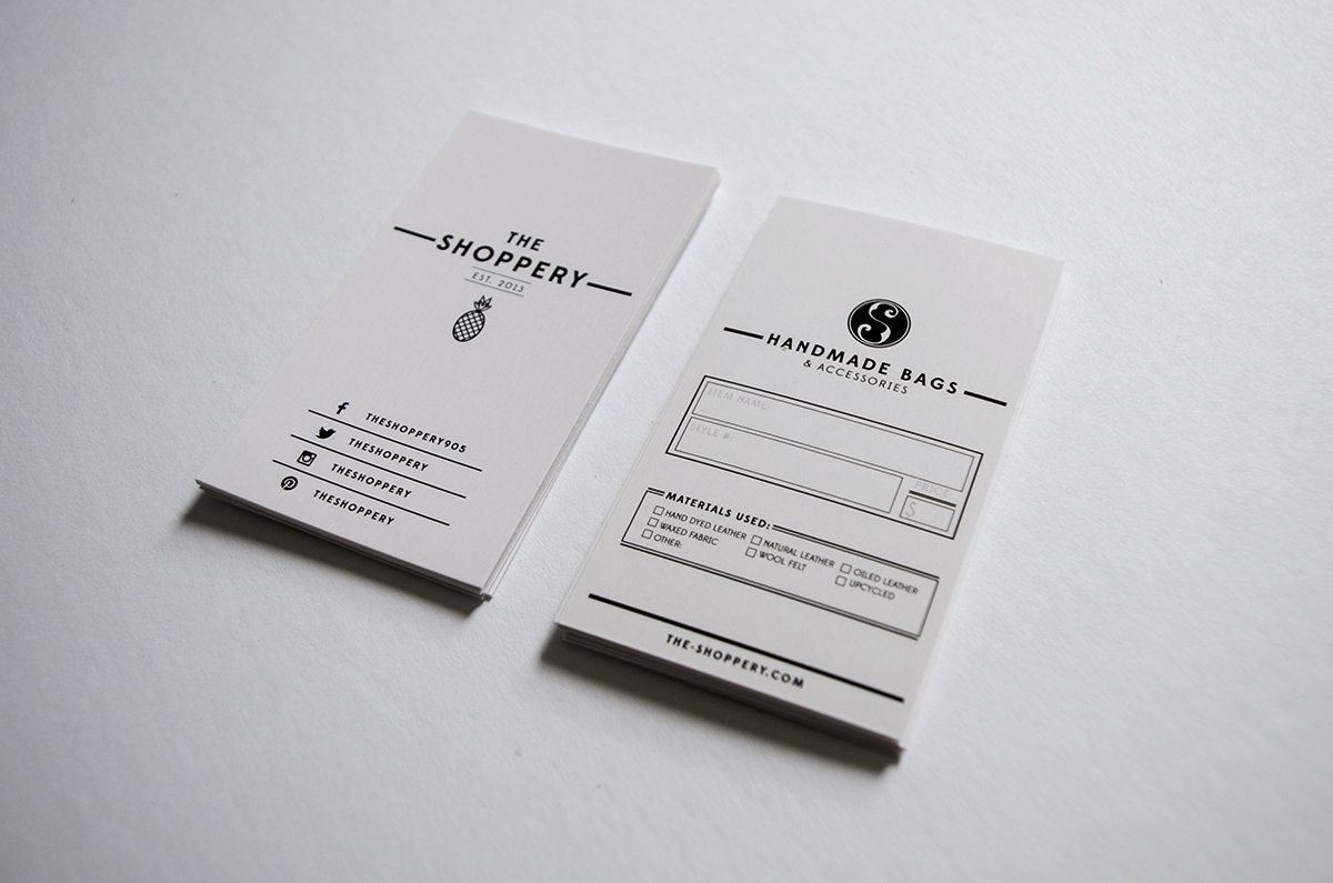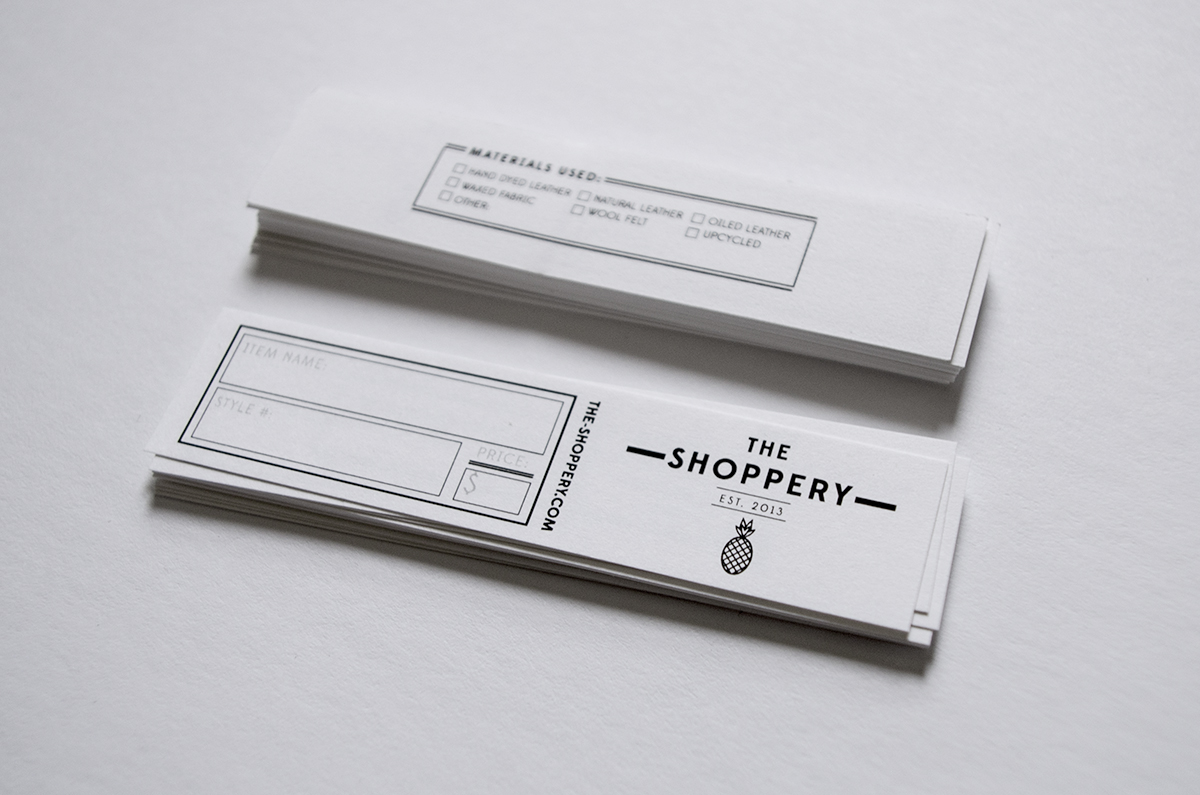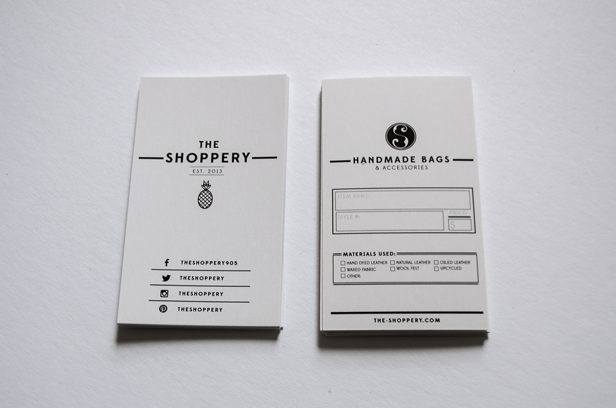 The Shoppery are a husband and wife team who make leather and fabric goods in Southern Ontario. I was asked to design a few items for them that would support the sale of their products in a retail environment.